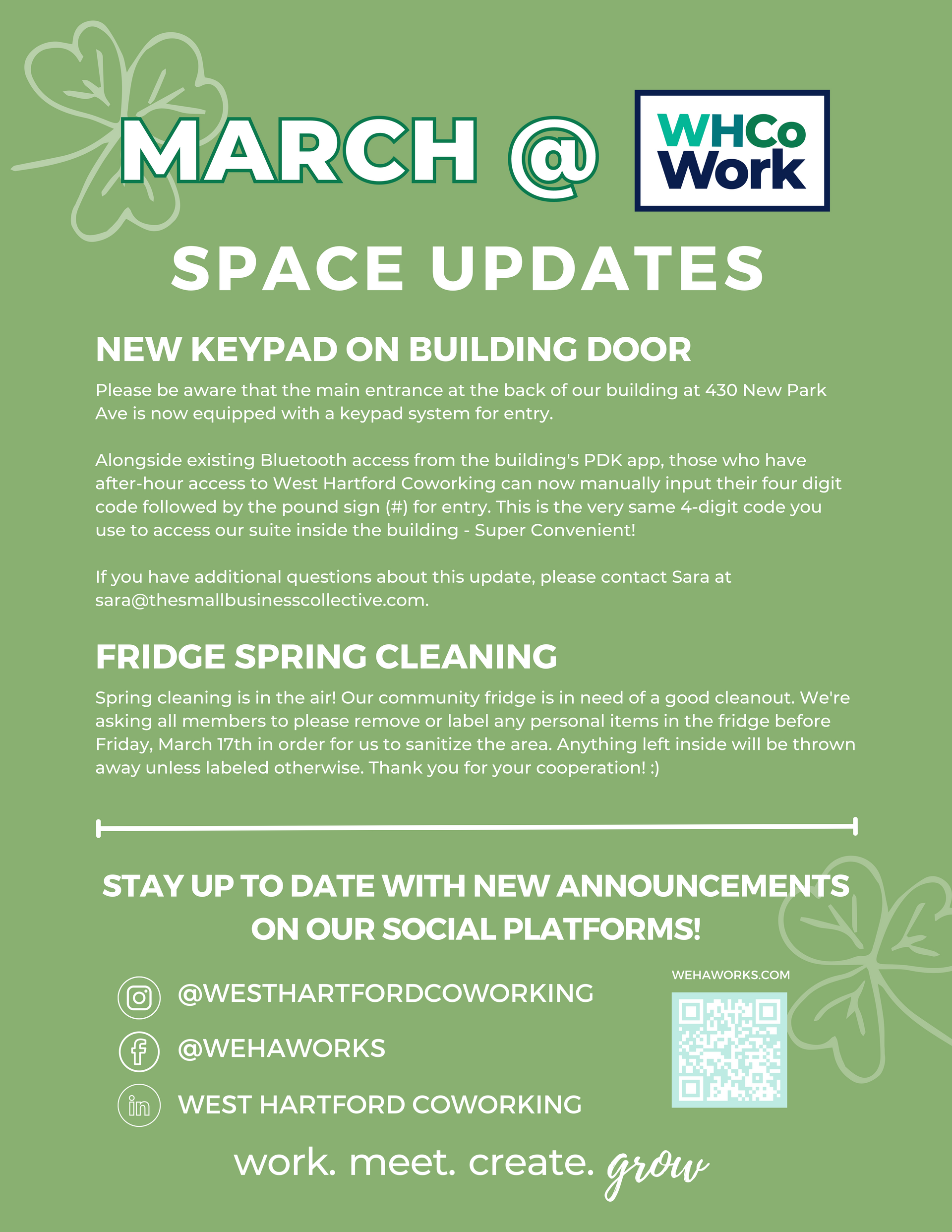 : West Hartford Co-Working is individually owned and operated. It has no affiliation or relationship with WeWork, WorkBar, or any other co-working space.